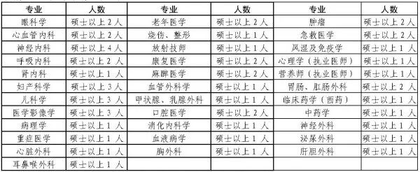 医学院校硕士研究生以上学历;具有执业医师资格。未毕业研究生也可以来院带薪实习。专业及招聘人数如下:
